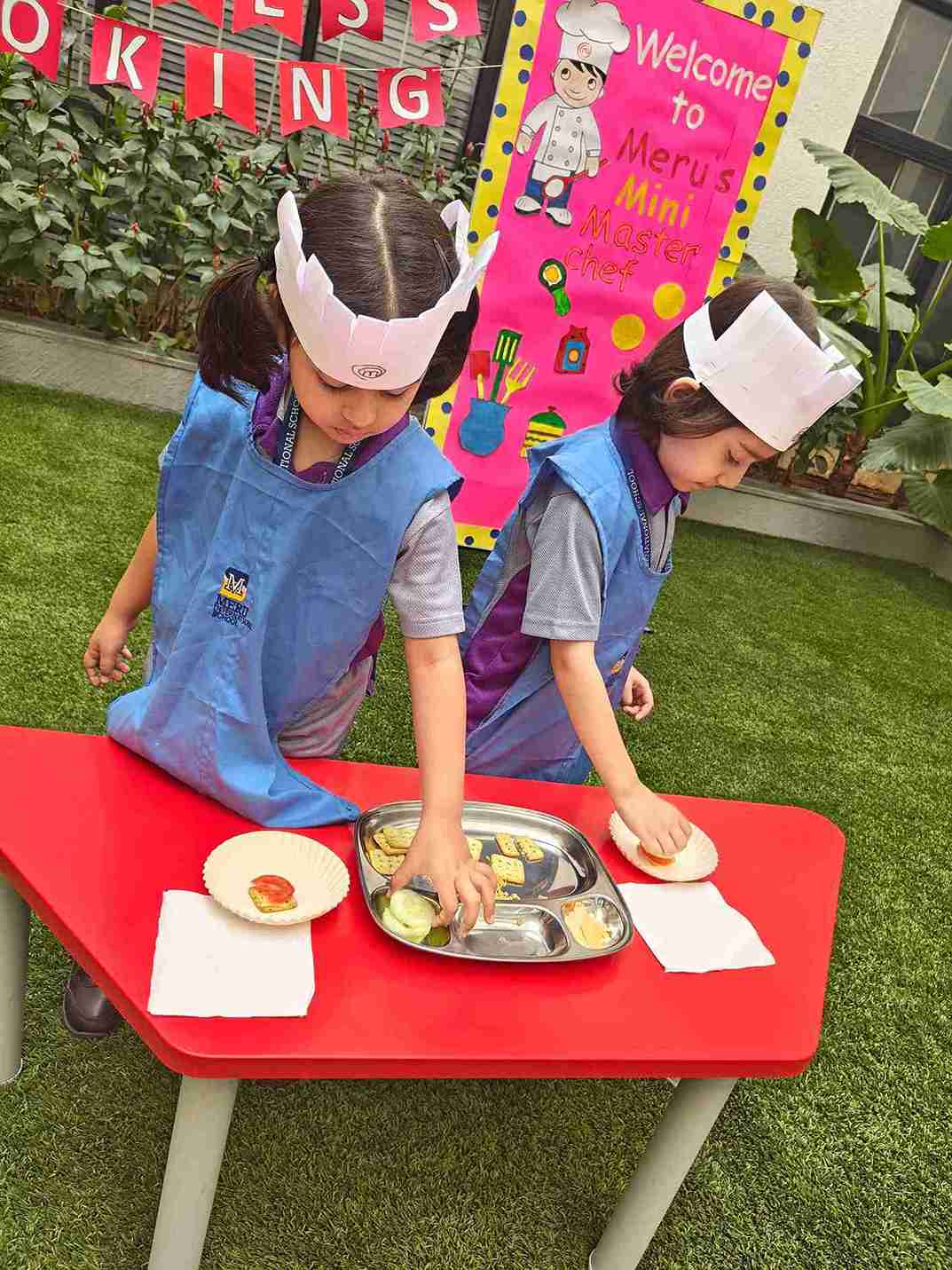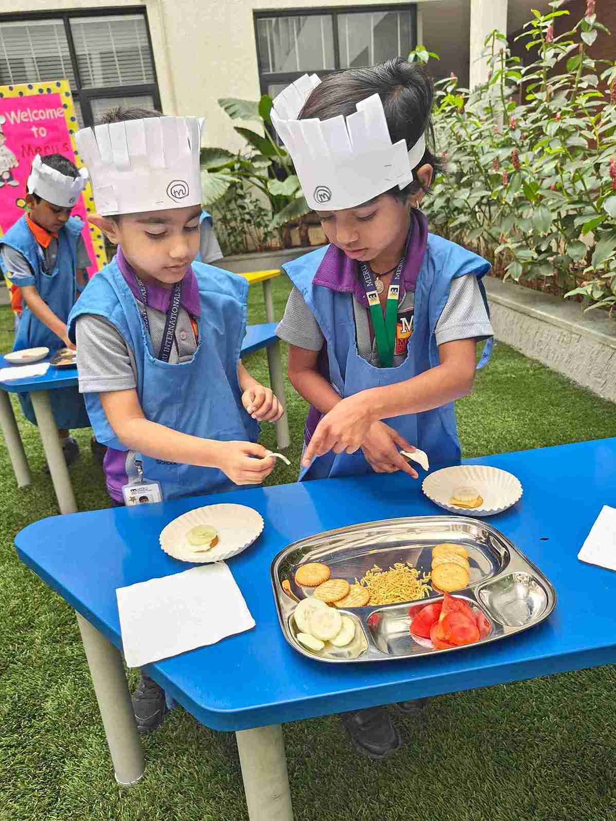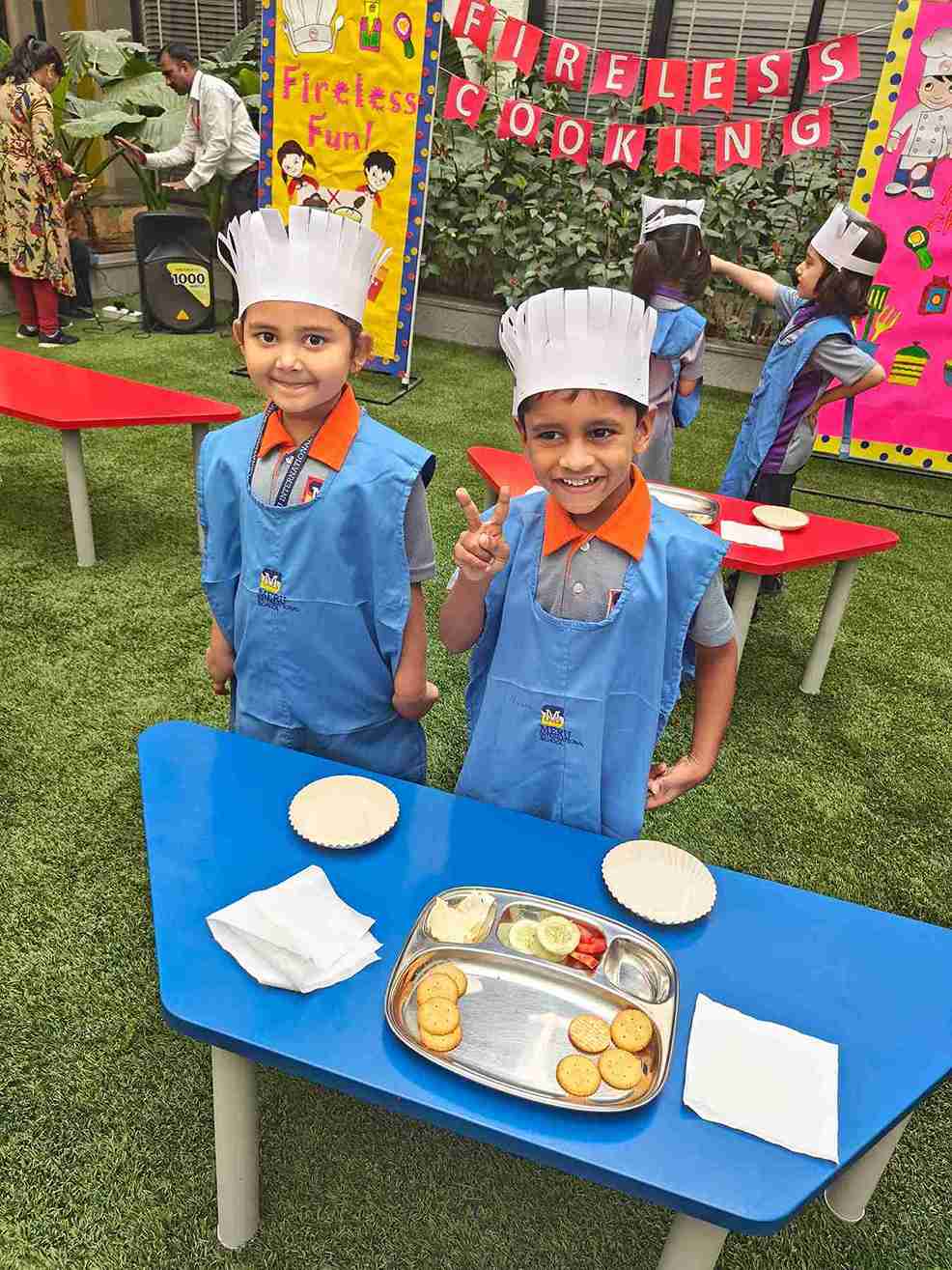 Our Meru MasterChef Fireless Cooking for EY2 event was an outstanding success, providing an exciting and interactive platform for young chefs to unleash their creativity in the kitchen — without using any heat! The children had a fantastic time crafting delicious biscuit sandwiches, combining crunchy biscuits with tasty spreads and fillings.